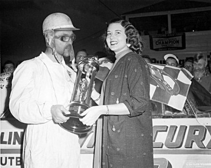 pour sa victoire et le championnat des pilotes. En arrière plan, Jessy
