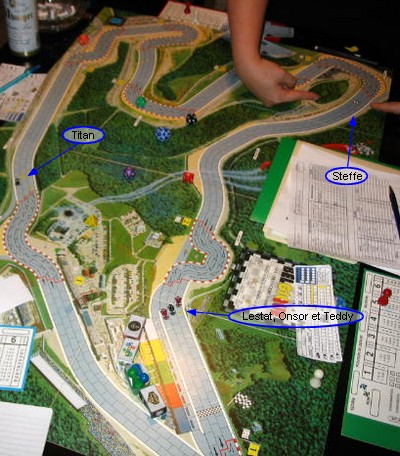 dans le 6e virage, la prise de la tête par Titan dans le 8e virage,