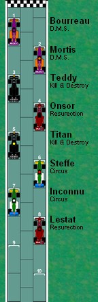 virage, troisième tour. Le Bourreau est premier, suivi de Mortis. Pour